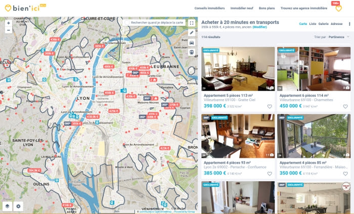 Bien’Ici sort la recherche immobilière par temps de transport, pour trouver un bien en voiture, en transports en commun, en vélo ou à pied.
